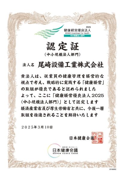 2025年度健康経営優良法人に認定されました